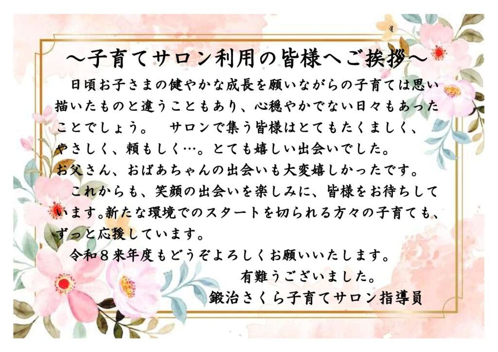 2026.03.31子育てサロン利用者様へご挨拶