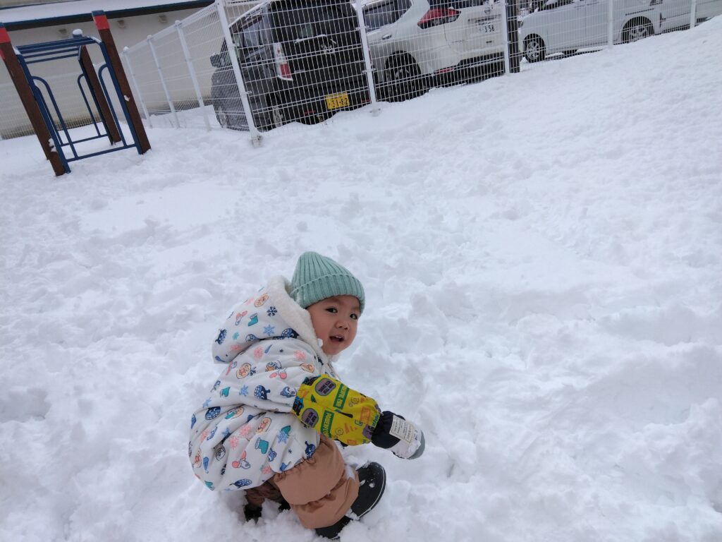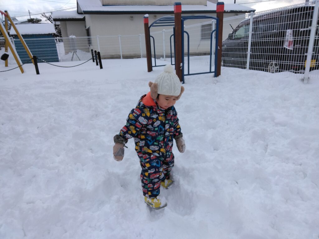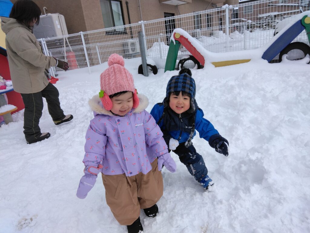 雪の上を歩いたり、雪だるまと一緒に写真を撮ったり、雪遊びを楽しみました