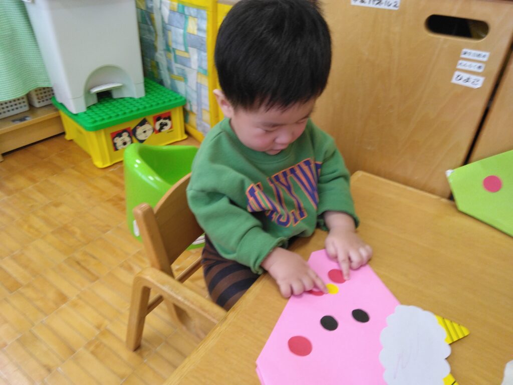 鬼のお面の制作をしました!ペタペタ…♪